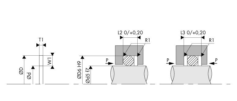 | Joint torique | Bague anti-extrusion | Dimensions du logement | Rayon | |||||||