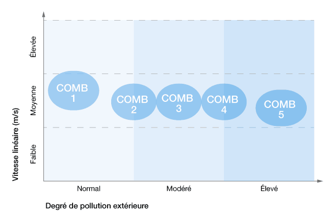 La dureté de l'arbre va dépendre de la vitesse linéaire (en m/s) et du niveau de pollution.